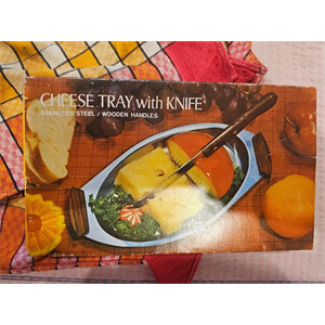 Cheese Tray w/Knife - Brand New in original packaging. Wrapped and unopened.Stainless Steel. Wooden Handles